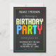 Invitation à la fête d'anniversaire. arrière - plan gris fusain avec des punchs amusants et animés de bleu, orange, vert et rouge dans le mot "party". Bordure multicolore. Simple mais élégant. Amusant mais classe. Cette invitation à la fête d'anniversaire fonctionne aussi bien pour les adultes que pour les enfants.