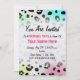 Une invitation lumineuse et colorée de fête d'anniversaire comportant un arrière - plan de l'aerographe au néon a inspiré l'empreinte de léopard sur l'avant et le dos. Personnalisez le texte sur l'avant avec des détails de votre occasion.