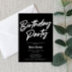 C'est une invitation de fête d'anniversaire en noir et blanc. Conception minimaliste minimale. Invitation de jour. fille gars garçon femme homme simple propre