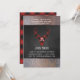 L'invitation parfaite pour une fête de bachelor dans un chalet pour le week-end ! Cette invitation présente un fond boisé avec une tête de cerf à carreaux rouge pour un look extérieur. Personnalisez en ajoutant les initiales du célibataire, son nom et les informations sur la fête. Espace supplémentaire au dos pour plus de détails, directions, etc.