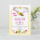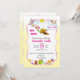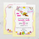 Cette invitation de fête de bébé adorable présente une petite abeille mignonne entourée de fleurs douces et de jouets ludiques, créant un design doux et joyeux pour célébrer une petite fille. Les accents floraux délicats et les détails fantaisistes la rendent parfaite pour une fête de bébé printanière ou sur le thème du jardin. Personnalisez le texte avec vos détails d'événement pour créer une invitation charmante pour vos amis et votre famille.