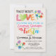 Invitation amusante et colorée pour une fête de couples mexicaine Taco' bout Love. Comprend des fleurs brodées, des polices et des maracas ainsi qu'un cœur de cactus.