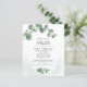Carte d'invitation de Fête de Fiançailles avec Feuilles d'Eucalyptus et Aquarelle, avec un fond rose pâle et une typographie tendance. Un excellent choix pour une fête de fiançailles sur le thème du mariage botanique.