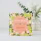 Définissez le ton de votre célébration spéciale avec cette charmante invitation mettant en vedette des citrons frais et des fleurs délicates dans des tons de corail et de vert. Les détails botaniques dessinés à la main créent un cadre parfait pour les détails de votre événement personnalisé, apportant une touche d'élégance fraîche au jardin à votre correspondance de fête.