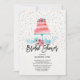 La belle invitation nuptiale de douche comportant un gâteau de mariage rose a orné avec le haut de forme rose et bleu magnifique de fleur avec les confettis minuscules de fleurs. Renversez notre invitation de wedding shower plus de pour regarder un dos rose coordonné d'aquarelle pour un contact spécial supplémentaire. Visitez notre magasin pour regarder notre collection d'invitations nuptiales de douche de gâteau.