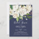 La belle invitation nuptiale de douche comportant les roses blancs d'aquarelle a placé sur un arrière - plan bleu de minuit