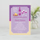 Invitation nuptiale contagieuse moderne, féminine et d'oeil de douche. Idéal pour recueillir amie et pour accueillir un événement d'échantillon de vin. Comporte une bouteille de vin, des verres de vin et un plat de fromage sur une palette de couleurs pourpre et jaune. Grand pour une jeune mariée sophistiquée avec un amour pour le vin et des Plats gastronomiques. Ajoutez vos propres mots. Arrière - plan de motif de pois.