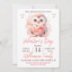 Une invitation de fête de la Saint-Valentin adorable. Conception d'un hibou mignon et duveteux tenant un cœur entouré de confettis de cœurs roses aquarelles. Une charmante invitation pour célébrer cette journée romantique avec votre famille et vos amis. Facile à personnaliser avec vos propres détails de fête. Peut également être utilisé pour les fêtes de bébé, les fêtes de mariage ou les célébrations d'anniversaire.
