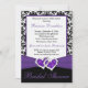 Cette invitation moderne chic à la douche de nage damassée en noir et blanc présente un ruban violet IMPRITED avec une paire de parties scintillant FAUX (IMPRITED) joint le broch des coeurs diamantés sur elle. Tout le texte et le type de papier sont personnalisables. ***VEUILLEZ NOTER qu'il n'y a pas d'éléments surélevés sur cette conception. Tout est imprimé à plat. Il est montré ici sur papier de base, mais il serait particulièrement agréable sur le lustreux papier métallique "glace", qui a une subtile étincelle métallique. Je n'utiliserais aucun des papiers colorés (champagne métallique, or, argent, moucheté) car ils TOUS décoloreront l'invitation. Le papier de lin ajoutera une texture de lignes fines que vous ne souhaiterez peut-être pas. Les papiers de base ou recyclés sont une alternative moins chère si vous avez un budget plus serré.***VEUILLEZ NOTER que si vous modifiez la police ou la taille de la police, cela peut modifier la façon dont votre invitation imprime. Il imprimera la façon dont vous la voyez sur votre moniteur, donc si vous avez des problèmes d'alignement, ou de dimensionnement, s'il vous plaît contactez-moi pour obtenir de l'aide. Je ne verrai pas votre invitation une fois que vous l'aurez commandé, et Zazzle ne modifiera rien (fautes de frappe, alignement, etc.). Si vous avez besoin d'aide ou souhaitez obtenir d'autres articles correspondants, veuillez envoyer votre demande par courriel à niteowlstudio@gmail.com.