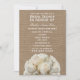 Une invitation à la douche nuptiale avec une image de roses blanches au fond sur un arrière - plan inspiré par le burlap. Personnalisez le texte avec les détails de votre occasion.