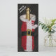 La bouteille de vin dans un costume de Père Noël de rouge fait une invitation gentille de fête de Noël.