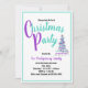 Cette invitation de fête d'arbre de Noël tendance présente une étoile à trois couches en faux argent et paillettes d'argent, une orchidée et une abstraction turquoise à l'avant et à l'arrière. Elle est encadrée de turquoise à l'avant et de paillettes de faux argent et d'orchidée à l'arrière. Remplissez les champs du modèle ou supprimez les informations pour votre fête.