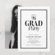 Une invitation de fête de remise de diplôme moderne en noir et blanc avec photo qui garde l'attention sur le diplômé. Cette invitation minimaliste de remise de diplôme est parfaite pour les célébrations de la promotion 2026 et peut être personnalisée avec votre photo, les détails de la fête et le texte. Parcourez la collection pour plus d'articles de fête de remise de diplôme assortis.
