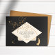 Invitez la famille et les amis à la remise des diplômes de vos proches avec cette invitation de fête de graduation de script doré amusant, avec un grand design de chapeau de diplômé de fête et de gland. Personnalisez avec les informations de votre fête de graduation.