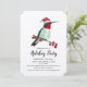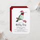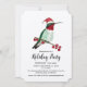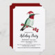 Jolie invitation de fête de vacances avec un colibri à gorge de rubis portant un chapeau de Père Noël sur un arrière - plan blanc. Ajoutez simplement votre nom ! La taille et la couleur de la police peuvent être modifiées en cliquant sur "Modifier cette conception".