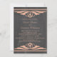 Elégante et chic Deco Chalkboard Bridal Shower Invitation avec une texture de tableau à damier tendance look arrière - plan et une paire de bordures de tourbillon art déco corail. Cette belle invitation wedding shower est parfaite pour une douche à thème rétro des années 20. Facile à customiser, il suffit d'ajouter les détails de votre mariage. Cliquez sur "Customiser" pour trouver d'autres options de personnalisation.