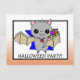 Invitation tes amis et ta famille à ta fête d'Halloween avec cette mignonne invitation d'Halloween avec une chauve-souris de dessin animé tenant des bonbons dans son aile.