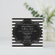Invitation de fête rayée classe noire, blanche et or. Personnalisez pour tout événement.