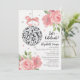 Une invitation de douche de mariée sur le thème de la disco, belle et glamour, avec une boule disco d'aspect argenté suspendue à un ruban rose pâle avec des accents d'aspect confetti argenté et de petits cœurs roses sur un fond de papier ondulé blanc cassé. De jolies bordures de fleurs roses en forme de rose et de pivoine terminent cette invitation à une fête sur le thème de la danse, féminine et girly. Parfait pour un mariage sur le thème de la disco ou une douche de couple ou une fête de fiançailles sur le thème de la danse. Conçu par Chrissy H. Studios, LLC. Tous droits réservés.