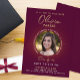 Il est temps de célébrer votre diplôme! Invitation vos invités à votre fête avec cette invitation photo moderne et élégante. L'avant présente un design minimaliste avec un élégant script moderne et une photo personnalisable, tandis que l'arrière est orné d'un arrière - plan bordeaux simple et élégant. Vous pouvez facilement personnaliser l'invitation en changeant les photos et le texte pour le rendre unique à vous. Cette invitation allie des éléments classiques intemporels à une touche moderne, donnant le ton d'une célébration mémorable et marquant parfaitement cette étape spéciale de votre vie !