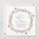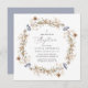 Invitations amis et la famille à un baptême avec cette élégante invitation, avec une couronne de fleurs sauvages aquarelle et un revers bleu poussiéreux.