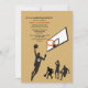 Invitation couleur sable avec des joueurs de basket en silhouette et un cerceau. Le payeur avant se lève pour faire une bourre de slam et porte le numéro correspondant à l'âge du garçon.La carte est facile à customiser avec votre libellé, police, couleur de police et choix de six types de papier.