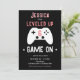 Simple minimaliste jeu contrôleur de jeu invitation d'anniversaire de gamer. Vous avez atteint le niveau de n'importe quel âge ! Tout le texte est personnalisé. Fun simple néon lignes sur le dos de la carte.