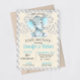 Invitation baby shower d'éléphant garçon. Les couleurs sont le bleu et le gris. Idéal pour les douches à thème pour les animaux de la jungle ou les safaris. Des invitations sur mesure et abordables Elephant Baby Shower personnalisées avec vos détails. Utilisez les outils de conception pour customiser le texte, modifier les polices et les couleurs ou ajouter vos propres photos pour créer une élégante invitation de Baby shower garçon.