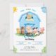 Belle invitation de fête d'anniversaire bleu pour garçon, animal de ferme invitation d'anniversaire