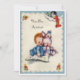 Vintage Garçon d'un an regardant un livre photo de tous ses amis qui seront invités à sa fête d'anniversaire.