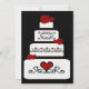 Un gâteau de mariage chic et moderne dans le blanc avec les ornements noirs, les points culminants rouges, et les roses rouges.