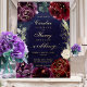 Un faire-part de mariage de marine bordeaux avec une scène aquarelle peinte de pivoines bordeaux et bleu marine avec des accents dorés chatoyants contre un arrière - plan d'aquarelle marine profonde. Cette version est dans GOLD FOIL, donc tous les éléments d'or ont de l'or en feuille réelle.