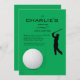 Une silhouette d'un golfeur au loin et d'un front de golf et d'un centre contre un arrière - plan vert font de cette invitation idéale pour les anniversaires, les Fêtes des pères, les retraites ou les sorties de golf. La floraison peut être agrandie ou réduite ou traînée à n'importe quel endroit. La carte est facile à customiser avec votre libellé, police, couleur de police et choix de six types de papier.