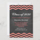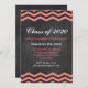 Cette Invitation à la Graduation tendance est sur un arrière - plan de tableau de bord illustré et accentué de chevrons de corail.