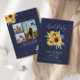 Cette élégante invitation à la graduation de tournesol comporte un bouquet de tournesol aquarelle sur un arrière - plan de la marine. Le dos de la carte contient plus de tournesols, et trois photos du diplômé. Le dos a aussi un espace pour leur nom et les détails de graduation sous les photos.