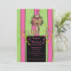 Commencez votre fête avec ce mignon et adorable invitation. Il est sur un arrière - plan rayé rose & vert. Il y a ce mignon hérisson tenant des cadeaux dans sa main portant un casquette d'anniversaire. Il y a des confettis sur les côtés de l'écriture. Consultez nos produits correspondants comme les timbres, les autocollants, les notes de remerciement, et bien plus encore. ©gribouillis