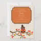 Célébrez l'anniversaire de novembre/vacances de votre enfant avec cette invitation adorable et de fête. Elle comporte un arrière - plan minuscule de point avec un hibou se reposant sur une branche d'arbre de chute utilisant un casquette de pèlerin. Votre message a un double cadre décoratif.