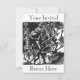Invitation de la bande de Skeleton : cette oeuvre d'art vintage représente un squelette super qui se brouille avec un homme en tux dansant avec une paire de bottes vides. Il y a deux principaux squelettes géants humanoïdes qui jouent des instruments de squelette, dont un violon, un tambour, une corne et ce qui pourrait être un piano. Les squelettes ont en fait certains instruments intégrés dans leurs os ainsi que des notes musicales squelettiques dans leurs cheveux. Ils semblent aussi danser sur la musique. C'est une oeuvre d'art très intéressante qui se prête à un certain nombre d'événements musicaux, qu'il s'agisse d'une représentation classique, d'un groupe de jazz ou d'un certain nombre d'événements thématiques macabres. le texte que vous avez invité apparaît en haut et votre événement ici en bas avec beaucoup de place pour customiser. Dans l'invitation " votre texte ici " peut être remplacé par tous les détails de votre événement unique.