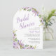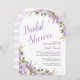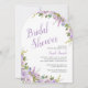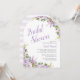 Invitations de douche nuptiale sur mesure et abordables. Ce joli design féminin a une bordure florale aquarelle avec fleurs violettes pastel et verdure. Personnalisez le design avec les détails de votre fête de douche nuptiale. Reverse side a un motif de bande d'aquarelle violet ou utilisez l'espace pour ajouter du texte et des photos supplémentaires. Cliquez sur Customiser pour choisir une couleur arrière - plan et modifier les polices et les couleurs du texte pour créer une invitation unique de wedding shower printemps ou été.