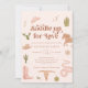 Invitation à la douche de nuptiale à thème Whimsical et rustique à thème occidental avec illustration de bottes et de casquettes de cowgirl, cheval, cactus, serpent, etc. Le texte dit : "Saddle up for love."