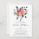 D'élégantes invitations à la douche à nuptiale fleurie ornent une poitrine d'aquarelle de fleurs de poitrine rose et pêche au feuillage botanique vert, surplombant vos détails de douche à nuptiale en lettrage noir chic. Les invitations s'inversent vers le vert d'épinette solide.