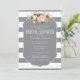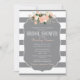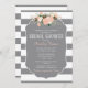 Elégante douche à rayures grises avec belle pêche et bouquet rose floral