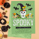 Préparez-vous à une fête frileusement amusante avec cette invitation à la fête du costume d'Halloween ! Doté d'un casquette de sorcière fantaisiste, d'un crâne, de chauves-souris et de bonbons sur un arrière - plan vert vif, ce design est parfait pour un bain éffrayant pour enfants. Amusant, ludique et accrocheur, il donne le ton parfait pour les amateurs de trucs et fêtes de tous âges. Personnalisez avec les détails de votre fête et laissez la hanteuse commencer!