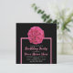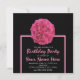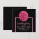 Un invitation de fête d'anniversaire moderne, parfait pour tous les âges. Illustration d'un bouquet de rose rose chaud au sommet. Personnalisez le texte rose et blanc avec les détails de votre occasion. arrière - plan noir.