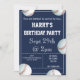 Invitation à la fête sur le thème du baseball, modifiable pour que vous puissiez modifier les détails de la salutation, du nom, de la date/heure, du lieu et de la RSVP avec rétro-affichage, disponible en d'autres couleurs.