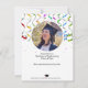 Invitation à la fête de la GRADUATION festive avec des serpentins colorés et un casquette noir traditionnel avec une mouche rouge. Modifiez les deux côtés de cette invitation.
