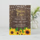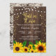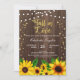 Tous les textes sont modifiables, sauf "Fall in Love" Romantic string light et belle aquarelle tournesol sur arrière - plan de bois rustique. Convient pour la Fête des mariées / Partie d'engagement / Couples Douche / Wedding shower.