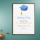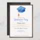 Belle et simple invitation à la graduation avec une illustration d'une casquette bleue de graduation. Tout le texte est personnalisable, il suffit d'ajouter vos informations ou votre propre langue. L'illustration a été peinte à l'origine à l'aide de marqueurs et de crayons. Illustré et dessiné par Patricia Alvarez.
