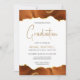 Cette invitation branchée à la fête de graduation comporte une bordure supérieure et inférieure de géode d'aquarelle dans les tons orange brûlé avec des reflets de feuille d'or. Le mot "Graduation" apparaît dans une police d'écriture moderne couleur or. Customisez l'invitation avec le nom du diplômé en texte doré et les détails du parti en gris fusain sur un arrière - plan blanc.
