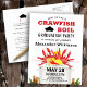 Red Crawfish Boil Graduation Party Invitation carte postale. Félicitations à la GRAD ! Félicitations pour leur succès bien mérité et célébrez-les avec cette belle carte. Tous les textes sont pré-arrangés pour que vous personnalisiez facilement et rapidement avec vos propres détails.